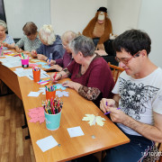 На занятии граждане пожилого возраста и инвалиды делились яркими воспоминаниями молодости, интересными историями и личным опытом занятий художественным творчеством и рукоделием. Проявив фантазию, каждый участник создал собственный неповторимый листик, украшенный геометрическими элементами.