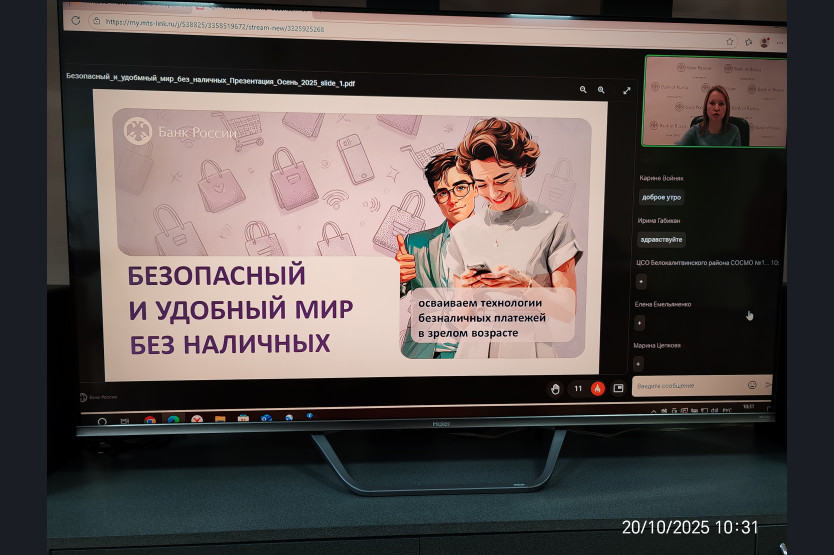 20 октября в филиале «Отделение социальной реабилитации инвалидов» состоялось третье в осенней сессии онлайн-занятие по финансовой грамотности для старшего поколения. Тема занятия: «Безопасный и удобный мир без наличных: осваиваем технологии безналичных платежей в зрелом возрасте».