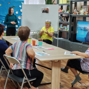 Так, 22 октября в филиале прошло групповое занятие «Профилактика когнитивных нарушений». Наталья Витальевна начала встречу с разминки через ассоциативную игру, что помогло создать доверительную атмосферу среди участников. Затем были предложены разнообразные задания, стимулирующие работу мозга: участники решали интересные кроссворды, искали отличия на изображениях и активно участвовали в интеллектуальной игре «Маска». Итог занятия – хорошее настроение и масса позитивных эмоций.